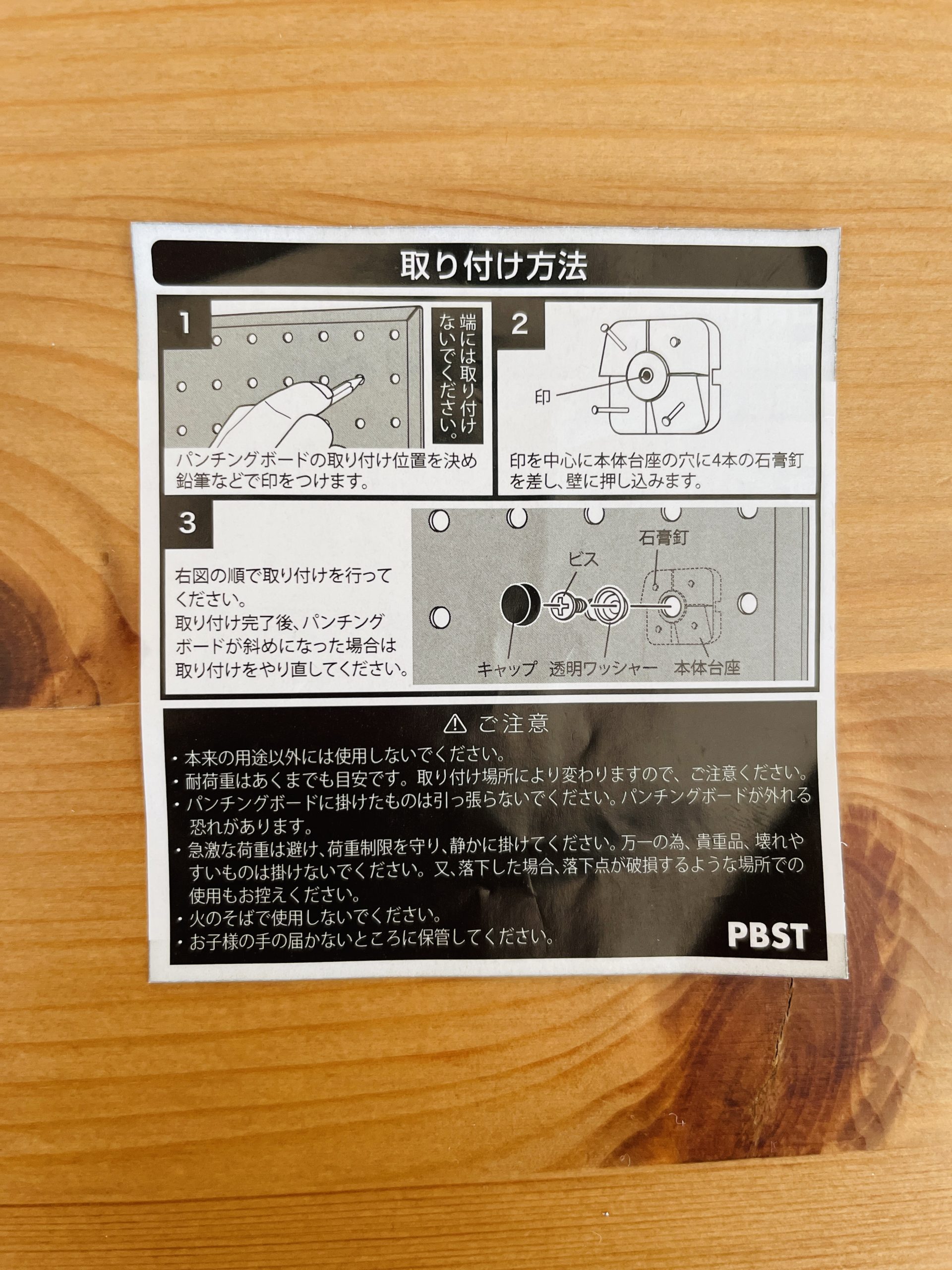 - Hikari 石膏ボード用パンチングボード留め具セットの説明書(表面)