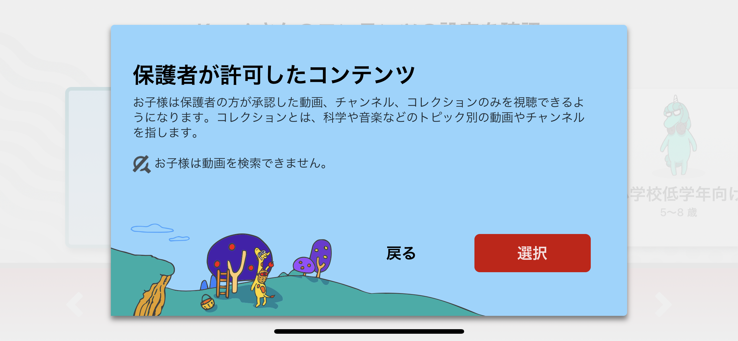 というところから調べて、YouTube kidsで見せたい動画を見せることができるようになりました。