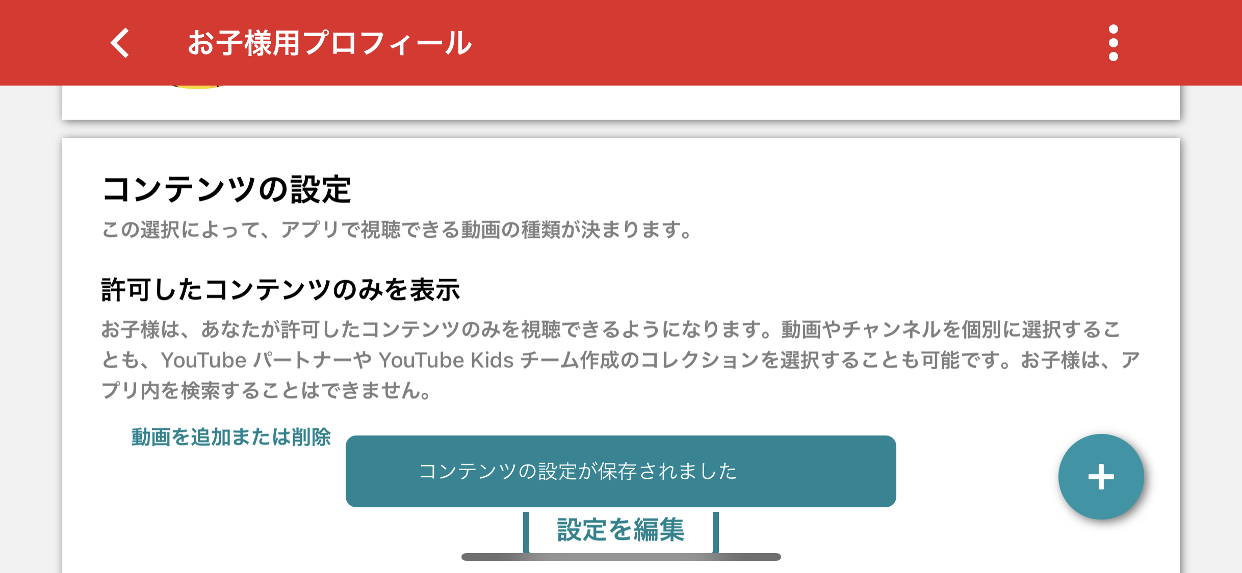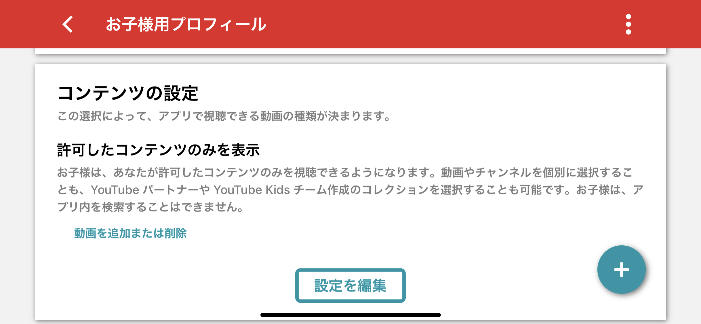 これを「許可したコンテンツのみを表示」に設定することで、親が見せたい動画だけをピックアップすることができます。