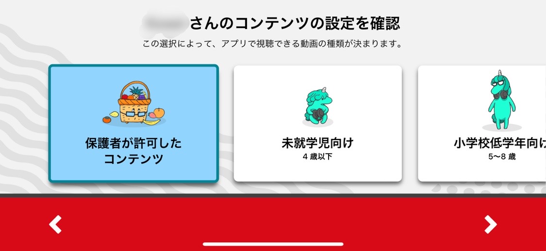 子供のアカウント毎に「コンテンツの設定」をすることができます。