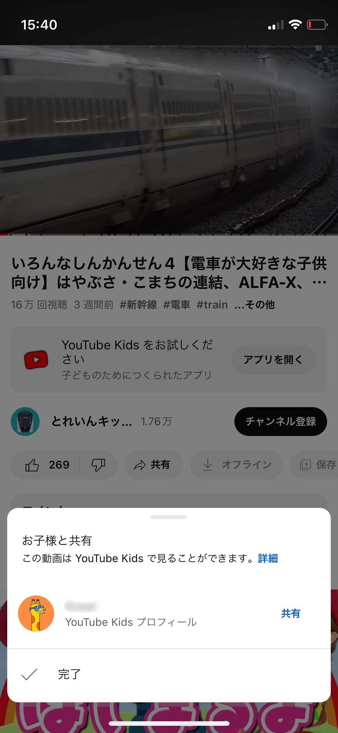 Youtube kids共有後の表示