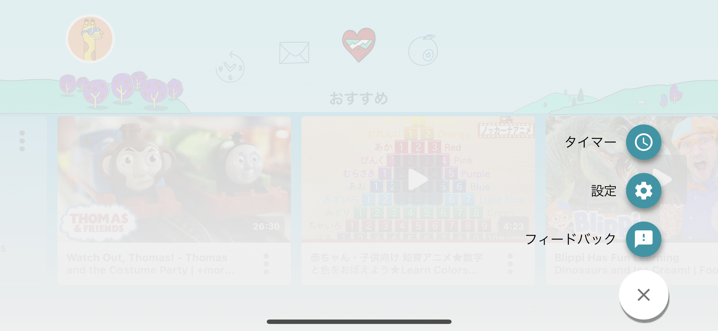 また、Youtube kidsだと「自分好みの動画が出てこない!」という子供の不満も解消できます。